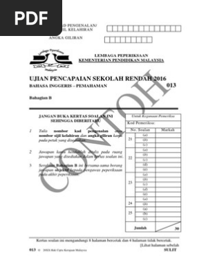 Instrumen Contoh Bahasa Inggeris Pemahaman B Upsr 2016 Pdf Business